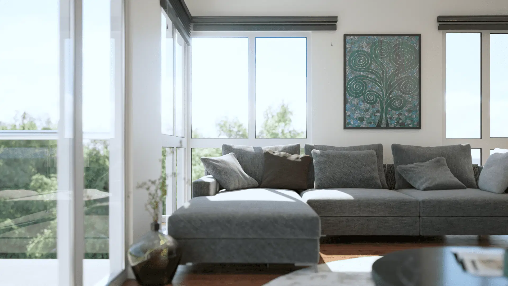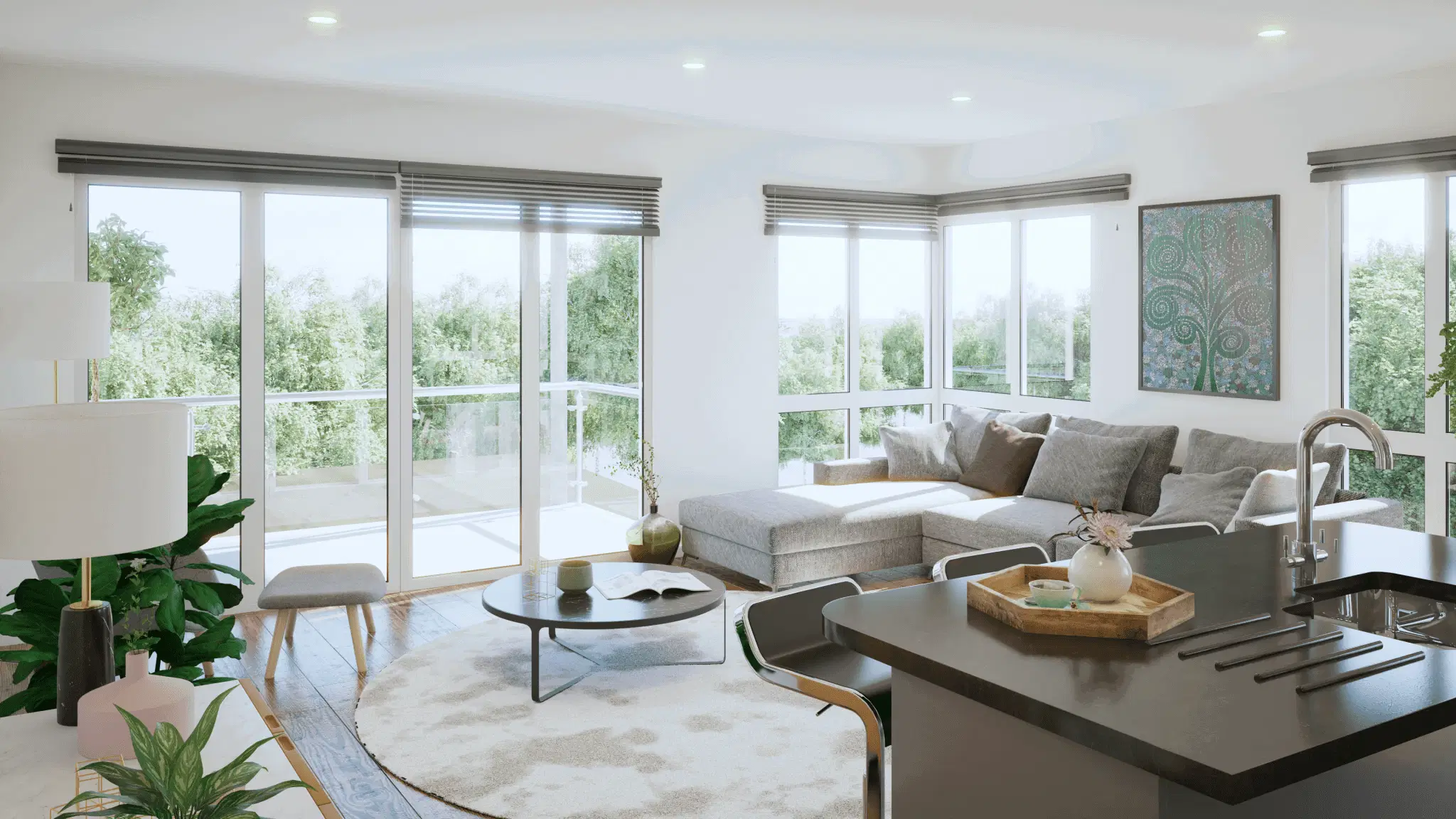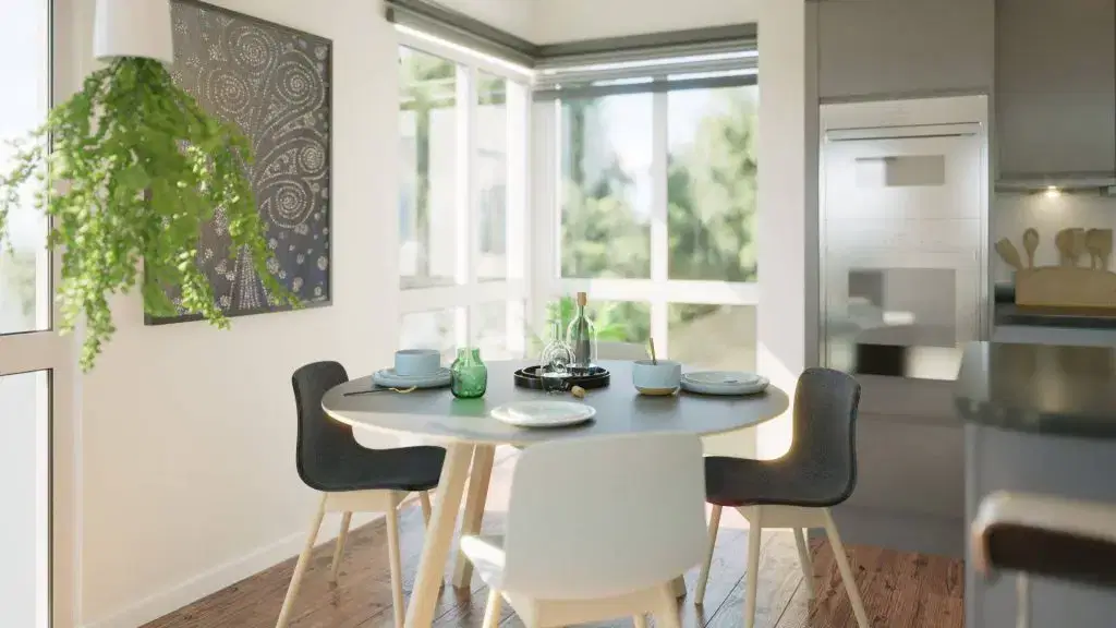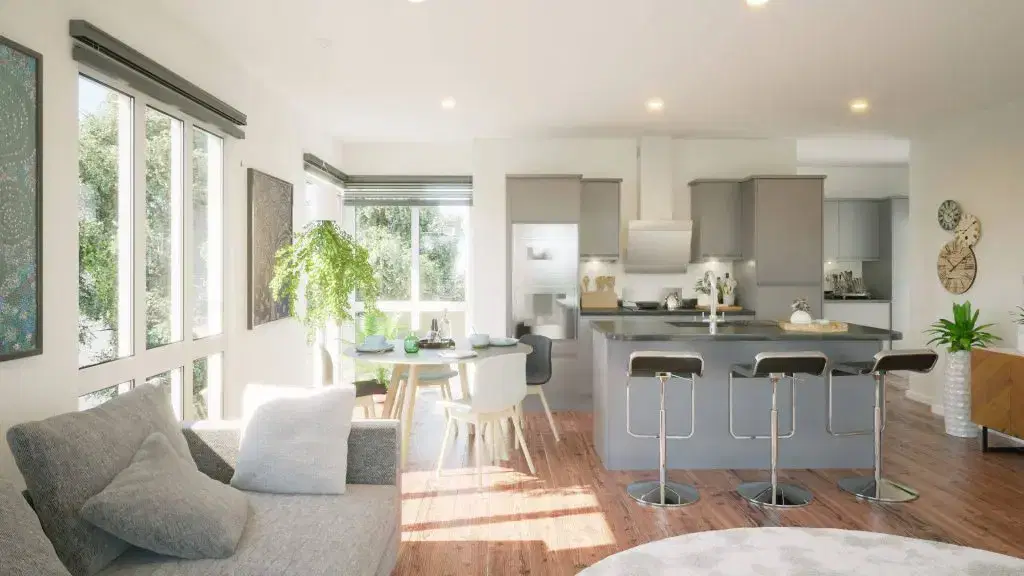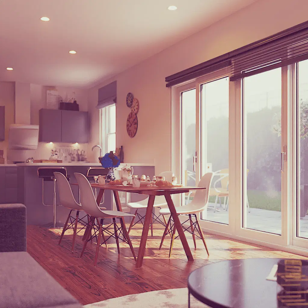 The exterior phase focused on integrating the structure into the Portishead cliffside, using advanced lighting physics to simulate the unique coastal “blue hour.” Inside, the focus shifted to material honesty, showcasing the interplay of polished concrete and oak textures under soft, natural light. This unified study provided the client with a definitive tool for both planning approval and interior design direction.